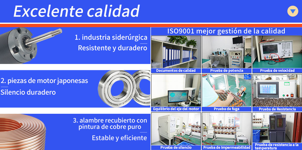 2).ZD MOTOR proporciona 8 pruebas de calidad de la función del motor para el equilibrio del eje del motor, resistencia, fugas, potencia, velocidad, impermeabilidad, silencio y resistencia a la temperatura. Confirme que la calidad del motor cumpla con sus estrictos requisitos.